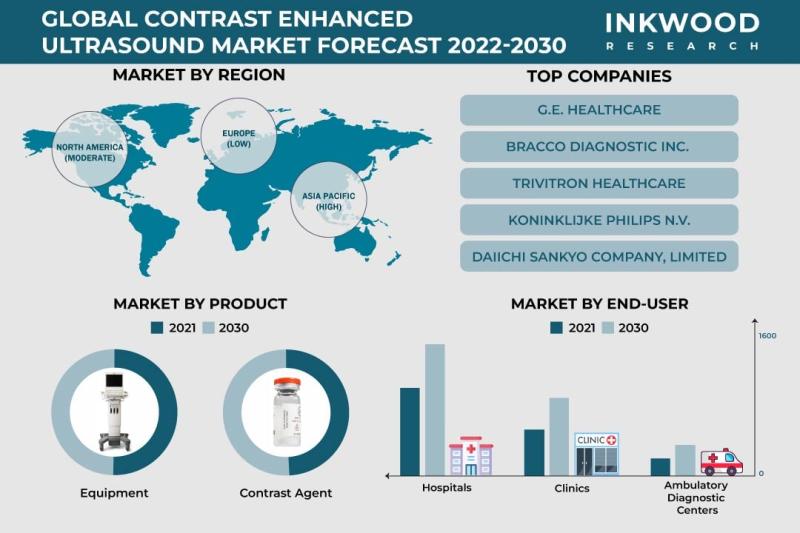 As per Inkwood Research's latest report, the Global Contrast Enhanced Ultrasound Market is anticipated to grow with a 5.25% CAGR and generate $2689.20 million between the assessment period, 2022-2030.Browse 42 market data Tables and 40 Figures spread over 271 Pages, along with an in-depth analysis of the Global Contrast Enhanced Ultrasound Market by Type, Product, End-User, & by Geography.