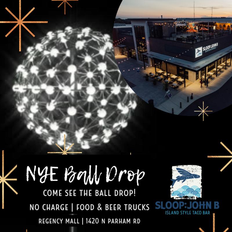 LOCAL UPSCALE TACO BAR, SLOOP JOHN B, BRINGS CARYTOWN NYE BALL DROP TO REGENCY. WATCH IT LIVE FROM THE PARKING LOT FOR NO CHARGE, MAKE RESEVERATIONS TO CELEBRATE WITH A SPECIAL DINNER DOWNSTAIRS OR DANCE THE NIGHT AWAY ON THE ROOFTOP WITH FAMILY AND FRIEN