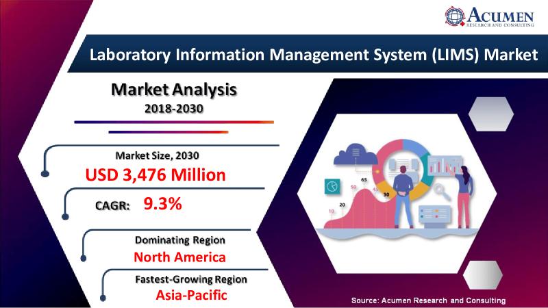 The global Laboratory Information Management System (LIMS) Market size is anticipated to around USD 3,476 Million by 2030, this market is anticipated to grow with 9.3% CAGR during the forecast time period.Growing funds in research and development activities by biotechnological and pharma organizations are providing an important drive to the Laboratory Information Management System (LIMS) market. Increasing emphasis on improving effectiveness of laboratories is also anticipated to aid the Laboratory Information Management System (LIMS) market gain tremendous momentum during the coming years. Increasing emphasis on complying with stringent regulations is also boosting the deployment of LIMS, as they obey with GCP, GMP, and GDP.