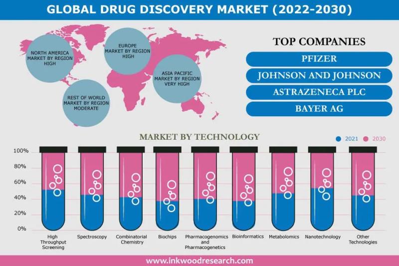 According to a new market research report launched by Inkwood Research, the Global Drug Discovery Market is set to grow with a CAGR of 6.58% during the forecasting period of 2022 to 2030, garnering a revenue of $101.66 billion by 2030.Browse 66 market data Tables and 52 figures spread over 190 Pages, along with an in-depth analysis of the Global Drug Discovery Market by Drug Type, Service, End-Users, Technology, & by Geography