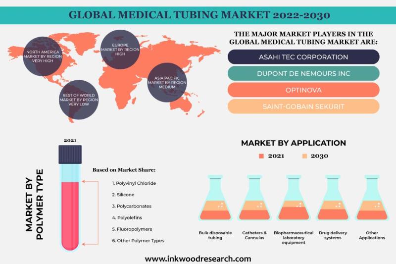 According to the recently published market research report by Inkwood Research, the Global Medical Tubing Market is expected to rise with a CAGR of 7.32% during the forecast years from 2022 to 2030, and is set to generate $27832.1 million revenue by 2030.Browse 45 market data Tables and 44 Figures spread over 171 Pages, along with in-depth analysis on the Global Medical Tubing Market by Polymer Type, by Application, & by Geography.