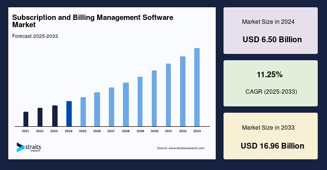 The global Subscription and Billing Management Software Market continues to grow at a rapid pace as businesses across industries transition to subscription-based business models. According to the latest analysis by Straits Research, the market size is estimated at USD 7.23 billion in 2025, expanding to USD 16.96 billion by 2033, registering a strong CAGR of 11.25% from 2025 to 2033.