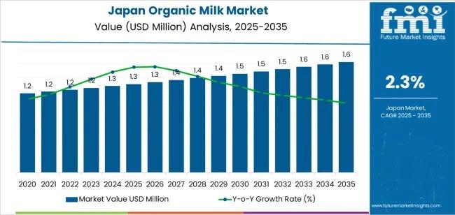 Japan's organic milk market is entering a phase of steady, sustainable growth as consumers gravitate toward healthier, natural, and environmentally responsible food choices. Demand is projected to rise from USD 1.3 million in 2025 to USD 1.7 million by 2035, driven by the growing preference for clean-label dairy products and heightened awareness surrounding sustainable agriculture and animal welfare.
