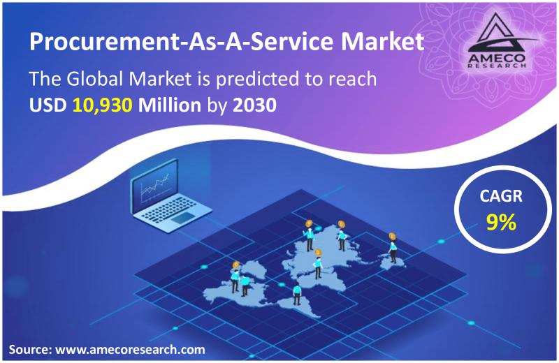 Ameco Research Analyst projected that the global procurement-as-a-service market will rise at a CAGR of more than 9% during the forecast period, with market size of over US$ 10,930 Mn by 2030.Due to rising rules, a plethora of information and resource limits, it is challenging for procurement organizations to control costs in today's corporate environment. Procurement outsourcing services helps users to focus on core categories and competencies, provide greater spending control, and improve service levels and business relationships by leveraging technology capabilities, supplier relationships and category insights and vastly automated transaction support and process delivery functions.