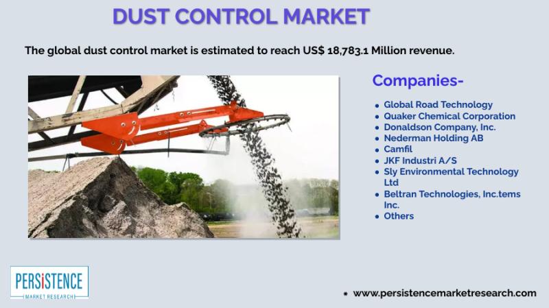 A study by Persistence Market Research (PMR), the global dust control market is expected to see a modest growth during 2017-2026. The global market for dust control is projected to bring in close to US$ 18.8 Billion in terms of revenue by the end of 2026.