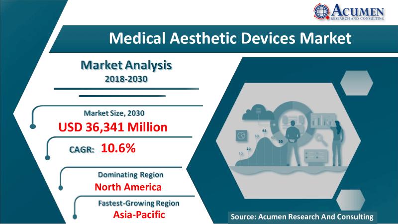 The Global Medical Aesthetic Devices Market size accounted for USD 14,980 Million in 2021 and is estimated to reach USD 36,341 Million by 2030.Medical Aesthetic Devices Market Dynamics