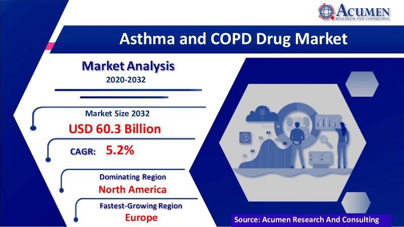 Asthma and COPD Drug Market Size to Occupy More Than USD 60.3 Billion by 2032 | CAGR 5.2% from 2023 to 2032The Asthma and COPD Drug Market research report published by Acumen Research and Consulting provides a comprehensive yet detailed analysis of the global market landscape. The report helps our clients understand the market scenario while also providing a detailed historical account of the market over the previous years. The Asthma and COPD Drug Market size focuses on various growth factors and assists decision makers in making informed decisions to maximize growth potential while increasing profitability.