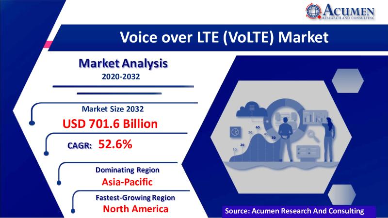 Voice over LTE (VoLTE) Market Size to Occupy More Than USD 701.6 Billion by 2032 | CAGR 52.6% from 2023 to 2032The Voice over LTE (VoLTE) Market research report published by Acumen Research and Consulting provides a comprehensive yet detailed analysis of the global market landscape. The report helps our clients understand the market scenario while also providing a detailed historical account of the market over the previous years. The Voice over LTE (VoLTE) Market size focuses on various growth factors and assists decision makers in making informed decisions to maximize growth potential while increasing profitability.