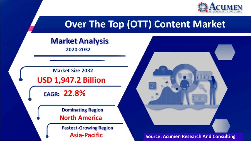 Over The Top (OTT) Content Market Size to Occupy More Than USD 1,947.2 Billion by 2032 | CAGR 22.8% from 2023 to 2032The Over The Top (OTT) Content Market research report published by Acumen Research and Consulting provides a comprehensive yet detailed analysis of the global market landscape. The report helps our clients understand the market scenario while also providing a detailed historical account of the market over the previous years. The Over The Top (OTT) Content Market size focuses on various growth factors and assists decision makers in making informed decisions to maximize growth potential while increasing profitability.