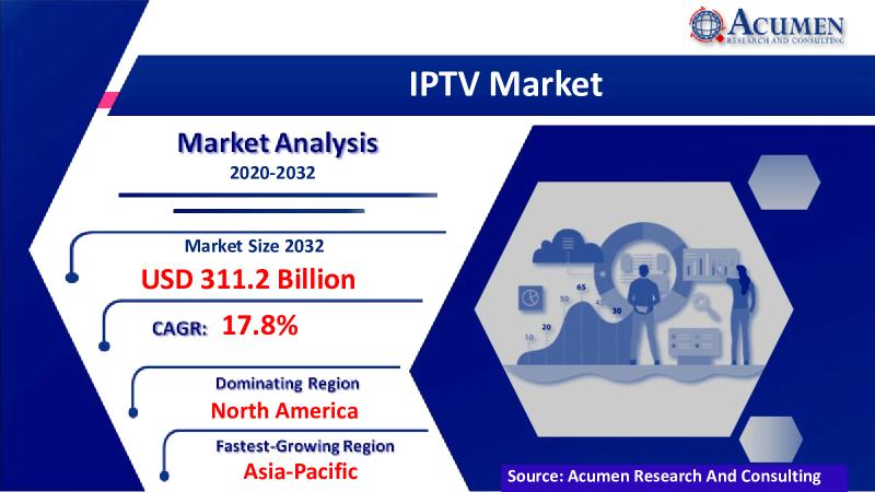 IPTV Market Size to Occupy More Than USD 311.2 Billion by 2032 | CAGR 17.8% from 2023 to 2032The IPTV Market research report published by Acumen Research and Consulting provides a comprehensive yet detailed analysis of the global market landscape. The report helps our clients understand the market scenario while also providing a detailed historical account of the market over the previous years. The IPTV Market size focuses on various growth factors and assists decision makers in making informed decisions to maximize growth potential while increasing profitability.