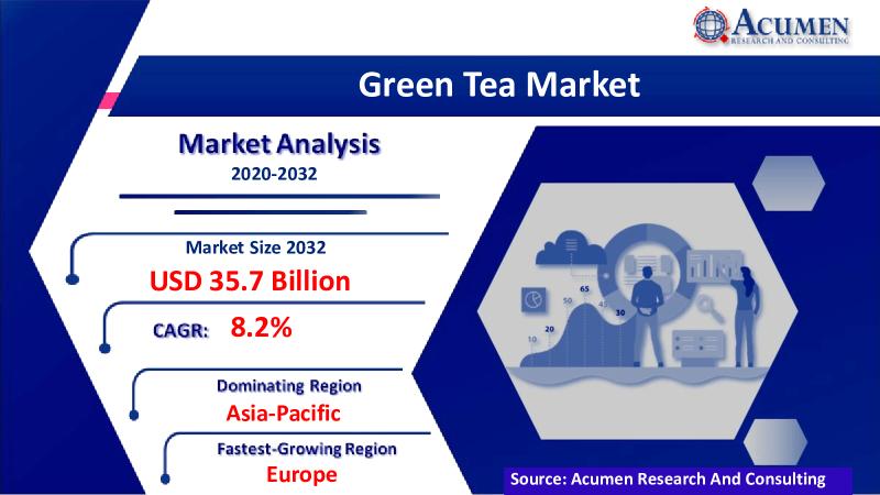 Green Tea Market Size to Occupy More Than USD 35.7 Billion by 2032 | CAGR 8.2% from 2023 to 2032The Green Tea Market research report published by Acumen Research and Consulting provides a comprehensive yet detailed analysis of the global market landscape. The report helps our clients understand the market scenario while also providing a detailed historical account of the market over the previous years. The Green Tea Market size focuses on various growth factors and assists decision makers in making informed decisions to maximize growth potential while increasing profitability.