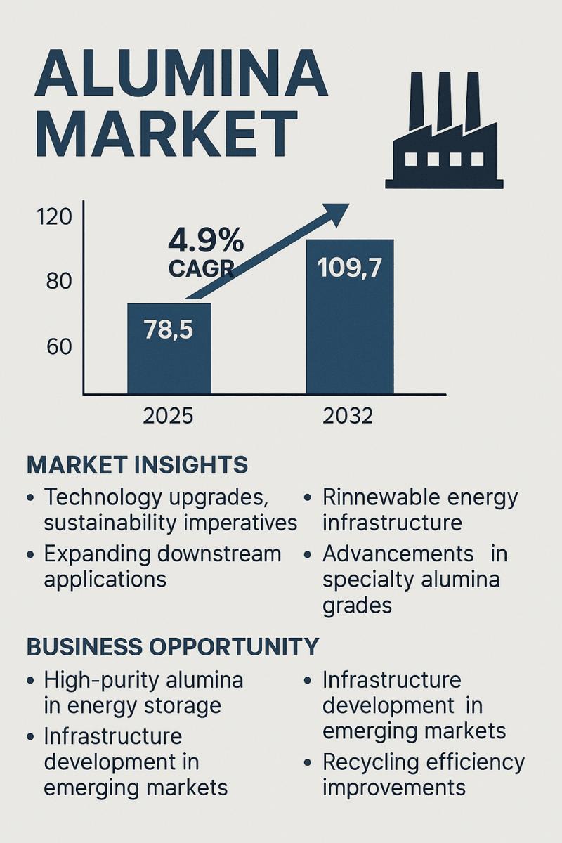The global Alumina Market is entering a stable yet progressive growth phase as industries increase their reliance on high-purity alumina for a diverse range of applications, including aluminum production, ceramics, refractories, abrasives, and emerging technologies. According to revised projections, the industry is expected to rise from USD 78.5 billion in 2025 to USD 109.7 billion by 2032, registering a 4.9% CAGR during the assessment period. This momentum is supported by…