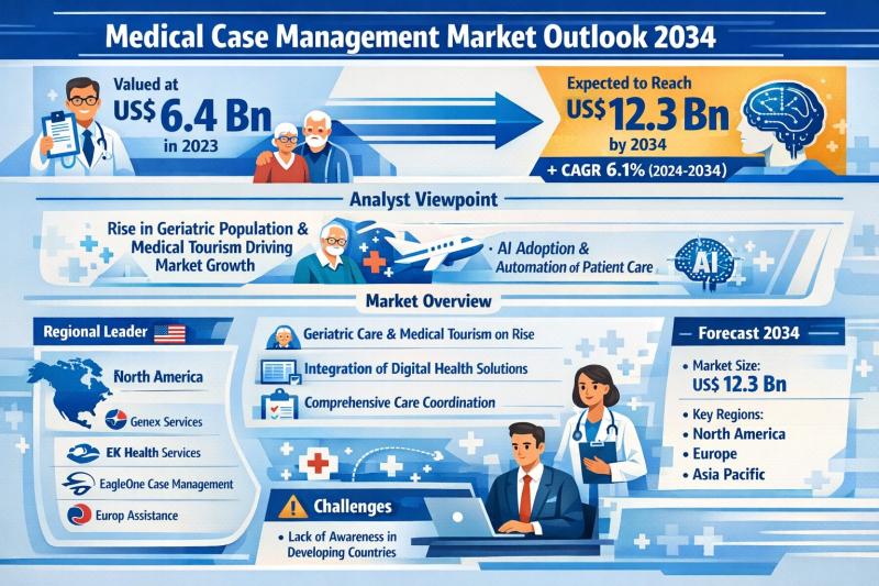 The global medical case management market is steadily gaining momentum as healthcare systems worldwide focus on improving patient outcomes, optimizing care coordination, and controlling escalating medical costs. In 2023, the market was valued at US$ 6.4 Bn. Supported by structural demographic shifts, expanding medical tourism, and rapid digitization of healthcare services, the market is projected to reach US$ 12.3 Bn by the end of 2034, growing at a compound annualโฆ
