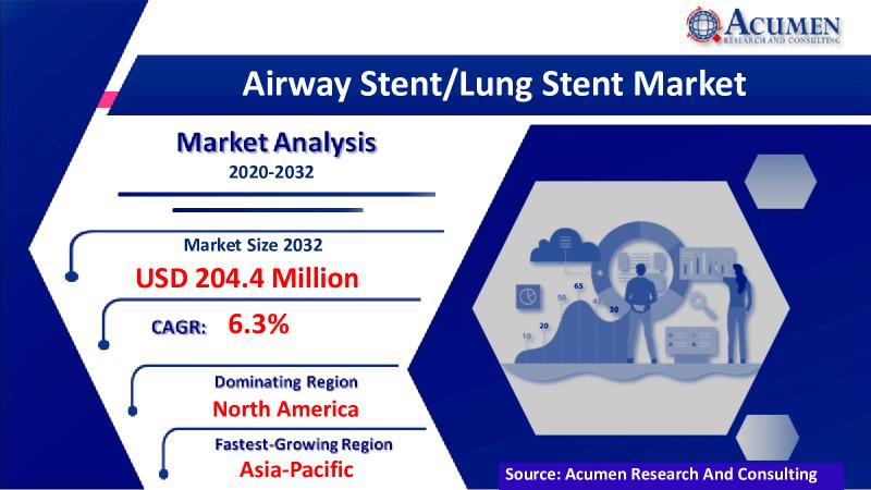 Airway Stent/Lung Stent Market Size to Occupy More Than USD 204.4 Million by 2032 | CAGR 6.3% from 2023 to 2032The Airway Stent/Lung Stent Market research report published by Acumen Research and Consulting provides a comprehensive yet detailed analysis of the global market landscape. The report helps our clients understand the market scenario while also providing a detailed historical account of the market over the previous years. The Airway Stent/Lung Stent Market size focuses on various growth factors and assists decision makers in making informed decisions to maximize growth potential while increasing profitability.