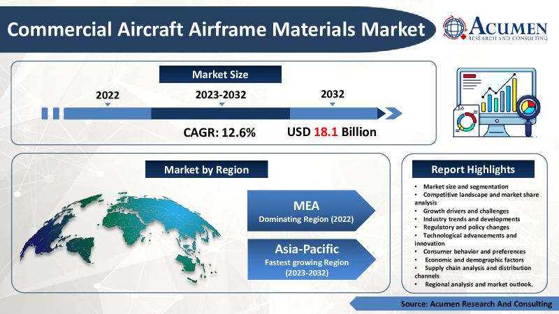 • The Commercial Aircraft Airframe Materials Market growth is likely to reach up to 12.6% from 2023 to 2032