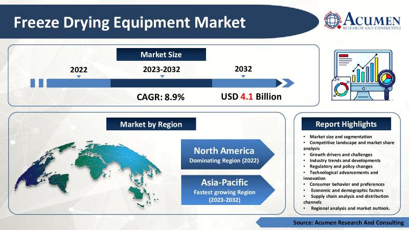 The Freeze Drying Equipment Market report provides a comprehensive analysis of the global market, taking into consideration its history, current scenario, and future development trends. It also examines market aspects such as trends, share, forecast, outlook, production, and future growth potential. The report also details various new trends and technologies that are being adopted by the various players in the Freeze Drying Equipment Market to propel their business in a positive direction. The report also highlights business dynamics such as profitability, product knowledge, revenue, industry growth, end users, etc. to provide the client with additional data regarding the Freeze Drying Equipment Market. The market report gives historical numbers from 2020 to 2022 and stretches the forecast period from 2023 to 2032.Freeze Drying Equipment Market Report Highlights