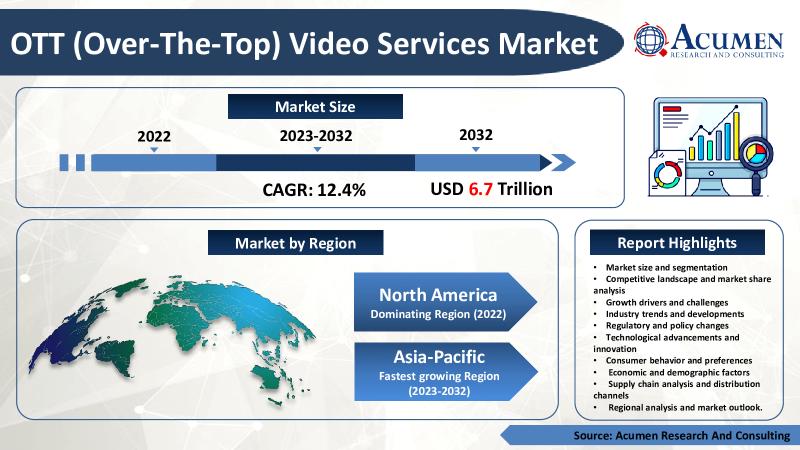 • The OTT (Over-The-Top) Video Services Market revenue is expected to attain USD 6.7 Trillion by 2032