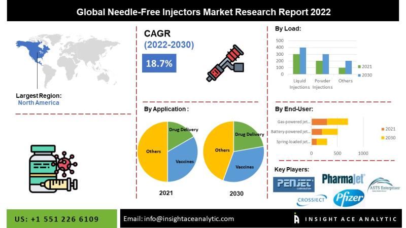 Insightace Analytics Pvt. Ltd. announces the release of a market assessment report on the "Global Needle-Free Injectors Market- by Application (Drug Delivery, Vaccines, Cosmetics and Other Applications), Load (Liquid Injections, Powder Injections and Projectile Injections), Technology (Spring-loaded Jet Injector, Battery-powered Jet Injector and Gas-powered Jet Injector), End-User (Hospitals, Veterinary Hospitals, Specialty Clinics, Home Care Settings and Other End-Users), Delivery Site (Intra dermal Injectors, Intramuscular Injectors and Subcutaneous Injectors), Usage (Reusable Needle-Free Injectors and Disposable Needle-Free Injectors), Trends, Industry Competition Analysis, Revenue and Forecast To 2030."Get Free Sample Copy of Report :https://www.insightaceanalytic.com/request-sample/1189