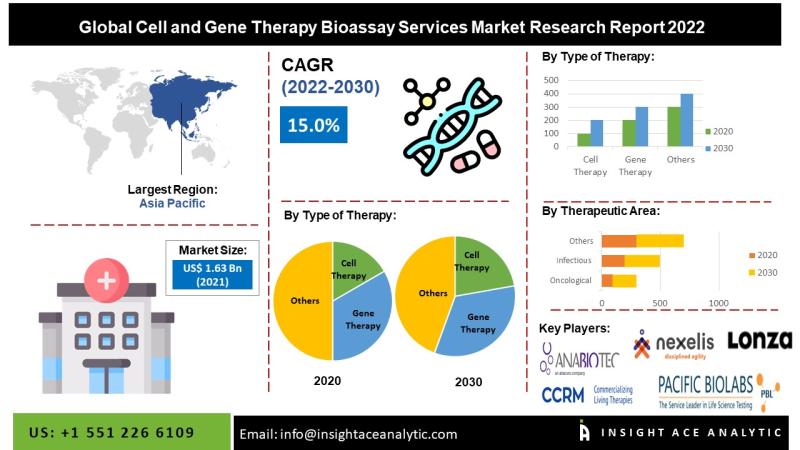 InsightAce Analytic Pvt. Ltd. announces the release of a market assessment report on the "Global Cell and Gene Therapy Bioassay Services Market- by Type of Therapy (Cell Therapy and Gene Therapy), Therapeutic Area (Oncological, Infectious, Autoimmune, Rare/Genetic, Cardiovascular, Metabolic, Blood, Neurological, Ophthalmic Disorders and Other Therapeutic Areas), Scale of Operation (Discovery, Preclinical and Clinical), Trends, Industry Competition Analysis, Revenue and Forecast To 2030."Get Free Sample Copy of Report :https://www.insightaceanalytic.com/request-sample/1208