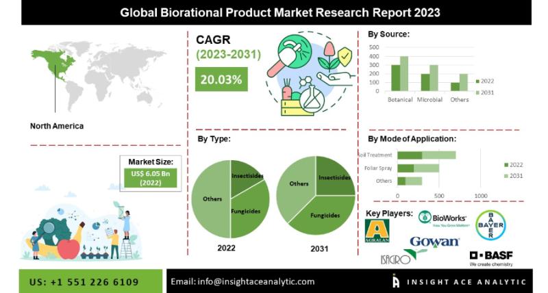 InsightAce Analytic Pvt. Ltd. announces the release of a market assessment report on the "Global Biorational Product Market Size, Share & Trends Analysis Report By Type (Micronutrient Fertilizers, Slow-Release Fertilizers, Controlled-Release Fertilizers, Customized Fertilizers, Water-Soluble Fertilizers And Others) And Crop Type (Pulses And Oilseeds, Grains And Cerals, Commercial Crops, Fruits And Vegetables And Others)- Market Outlook And Industry Analysis 2031"The global biorational product market is estimated to reach over USD 30.82 billion by 2031, exhibiting a CAGR of 20.03% during the forecast period.