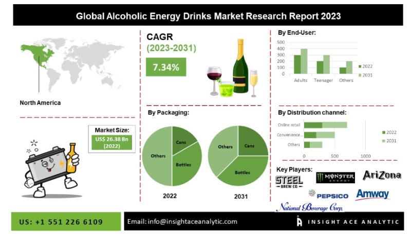 InsightAce Analytic Pvt. Ltd. announces the release of a market assessment report on the "Global Alcoholic Energy Drinks Market Size, Share & Trends Analysis Report By Packaging (Cans And Bottles), End Users (Adults And Teenagers), And Distributional Channel (Supermarkets And Hypermarkets, Convenience Stores, Online Retail And Others)- Market Outlook And Industry Analysis 2031"The global alcoholic energy drinks market is estimated to reach over USD 49.20 billion by 2031, exhibiting a CAGR of 7.34% during the forecast period.