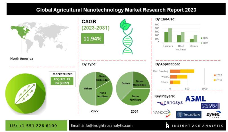 InsightAce Analytic Pvt. Ltd. announces the release of a market assessment report on the "Global Agricultural Nanotechnology Market Size, Share & Trends Analysis Report By Type (Nano Herbicides, Nano Fertilizers, Nano Pesticides, Nano Biosensors, Nanomaterials, And Others), Application (Crop Production & Protection, Water Purification, Recycling Agriculture Waste, Soil Improvement, Plant Breeding, And Diagnostic), And End Users (Farmers, R&D Institutes, Government Organizations And Others)- Market Outlook And Industry Analysis 2031"Get Free Sample Copy of Report :