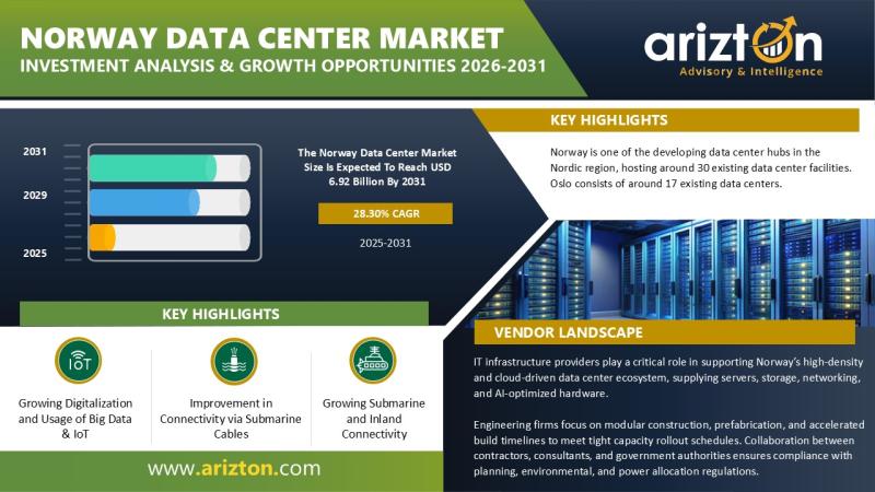 According to Arizton, Norway's data center market is transitioning into a strategic growth hub within Europe, driven by rising hyperscale investments and AI-led infrastructure demand. The market, valued at USD 1.55 billion in 2025, is projected to reach USD 6.92 billion by 2031, reflecting a shift toward high-density, energy-efficient deployments. Norway's structural advantages, renewable hydropower, natural free cooling, and strong subsea connectivity, are not only reducing operational costs but also…