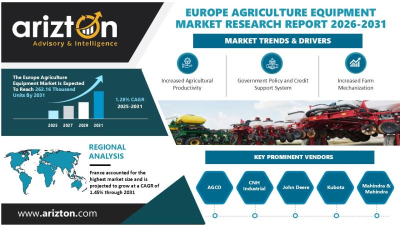 According to Arizton research, the Europe agriculture equipment market size was estimated at 242.96 thousand units in 2025 and is expected to reach 262.16 thousand units by 2031, growing at a CAGR of 1.28% during the forecast period. The market is a vital and rapidly evolving segment of the agricultural industry, influenced by a mix of structural…