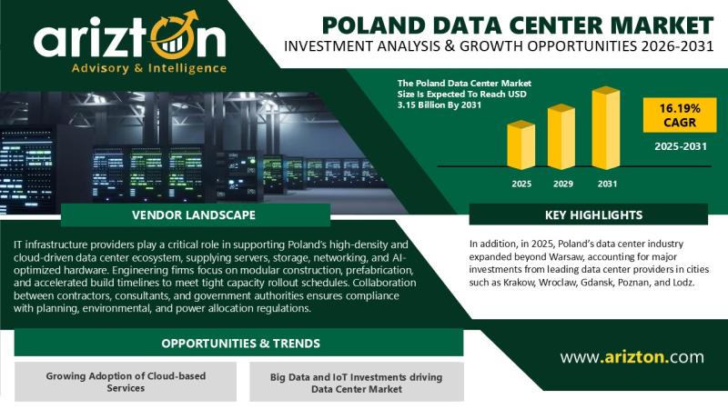 According to Arizton's latest research report, the Poland data center market size was valued at USD 1.28 billion in 2025 and is expected to reach USD 3.15 billion by 2031, growing at a CAGR of 16.19% during the forecast period