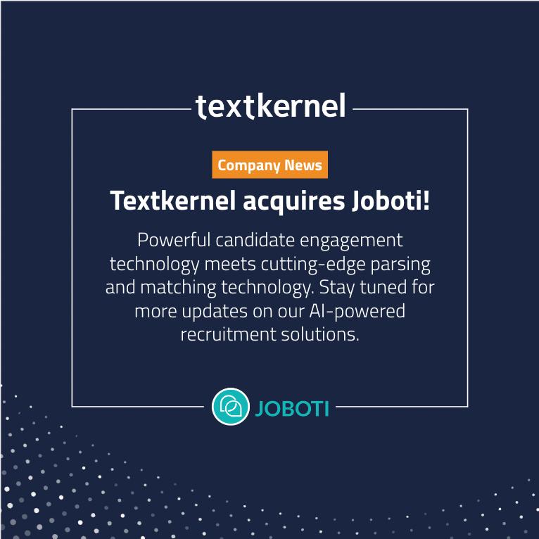 Amsterdam, 14 March 2023 - Textkernel, a renowned AI solutions provider for the recruitment industry backed by strategic software investor Main Capital Partners, has recently announced its acquisition of Joboti, a specialized fast-growing candidate engagement technology provider. This strategic move marks another significant step in Textkernel's global buy-and-build strategy and reinforces its position as a leading value-added partner to corporate, staffing and software vendor clients.The acquisition of Joboti brings together two innovative organizations with a common vision to provide seamless, automated, and scalable solutions for recruiters and sourcing professionals. Textkernel's cutting-edge parsing and matching technology, combined with Joboti's innovative candidate engagement technology, creates a powerful platform for recruiters to find and engage the right candidates with minimal effort.
