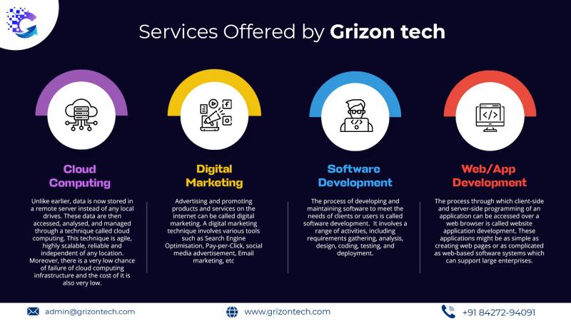 Grizon Tech IT services are committed to providing high-quality IT solutions to businesses seeking digital transformation. We have a team of highly skilled and passionate professionals who are dedicated to delivering innovative and customised IT solutions to all your business requirements. Some of our services include software development, cloud computing, web/app development and digital marketing.