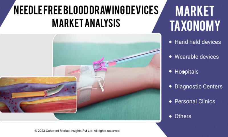 New Report by Coherent Market Insights, titled "Needle-Free Blood Drawing Devices Market: Global Industry Trends, Share, Size, Growth, Opportunity and Forecast 2023-2030," offers a comprehensive analysis of the industry, which comprises insights on the Needle-Free Blood Drawing Devices market analysis. The report also includes competitor and regional analysis, and contemporary advancements in the global market.This 130 Pages report has a complete table of contents, 134 figures, tables, and charts, as well as insightful analysis. The Needle-Free Blood Drawing Devices market has been growing significantly in recent years, driven by a number of key factors, such as increasing demand for its products, expanding customer base, and technological advancements. This report provides a comprehensive analysis of the Needle-Free Blood Drawing Devices market, including market size, trends, drivers and constraints, Competitive Aspects, and prospects for future growth.