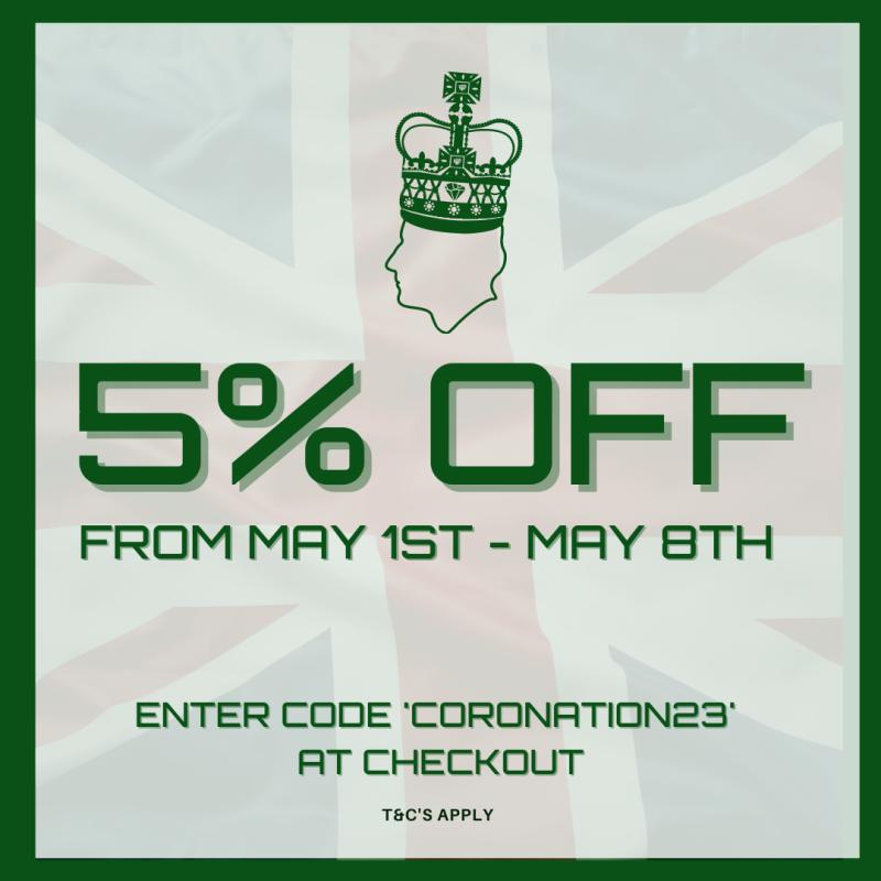 Use discount code CORONATION13 at the checkout from midnight on the 1st of May to benefit from the 5% discount. Terms and conditions do apply, and the *Specialist Bug Detection range is excluded from the offer.