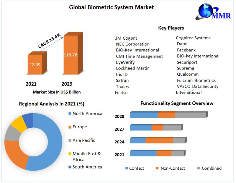 You can edit or delete your press release Biometric System Market predicts that the market will reach USD 116.76 Bn. by 2029, at a CAGR of 13.4% during the forecast period. here