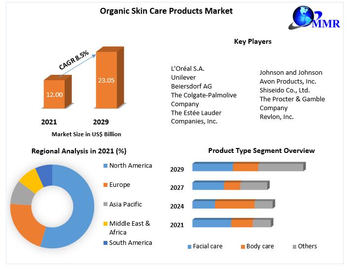 Pune 02, May 2023: Organic Skin Care Products Market is expected to grow at a CAGR of 8.5 percent during the forecast period. Global Organic Skin Care Products Market is expected to reach from USD 12.00 Bn to USD 23.05 Bn by 2029.Organic Skin Care Products Market Report Scope and Research Methodology