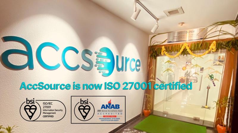 "With achieving ISO 27001 standards, AccSource advances in addition to already being just compliant with information and data security standards to being externally verified as actually adhering to Global industry best practises - something we believe is extremely important when handling sensitive client data," Badrinarayanan, Director of Operations at AccSource added.