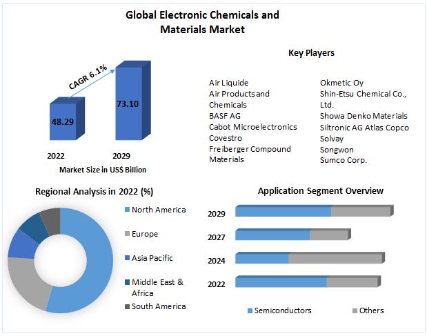According to a recent market research report published by MMR, the global electronic chemicals and materials market is expected to reach USD 73.10 Bn by 2029, with a compound annual growth rate (CAGR) of 6.1 percent during the forecast period. In 2022, the market was valued at USD 48.29 Bn.Electronic Chemicals and Materials Market Report Scope and Research Methodology