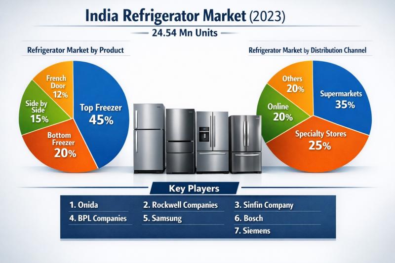 India Refrigerator Market was valued at 24.54 Mn Units in 2023, reflecting steady demand across urban and semi-urban households. According to industry analysis by Maximize Market Research, the market continues to expand due to rising disposable incomes, rapid urbanization, and growing adoption of modern kitchen appliances. Among product categories, Top Freezer refrigerators dominate the India Refrigerator Market, owing to their affordability, energy efficiency, and widespread consumer acceptance.