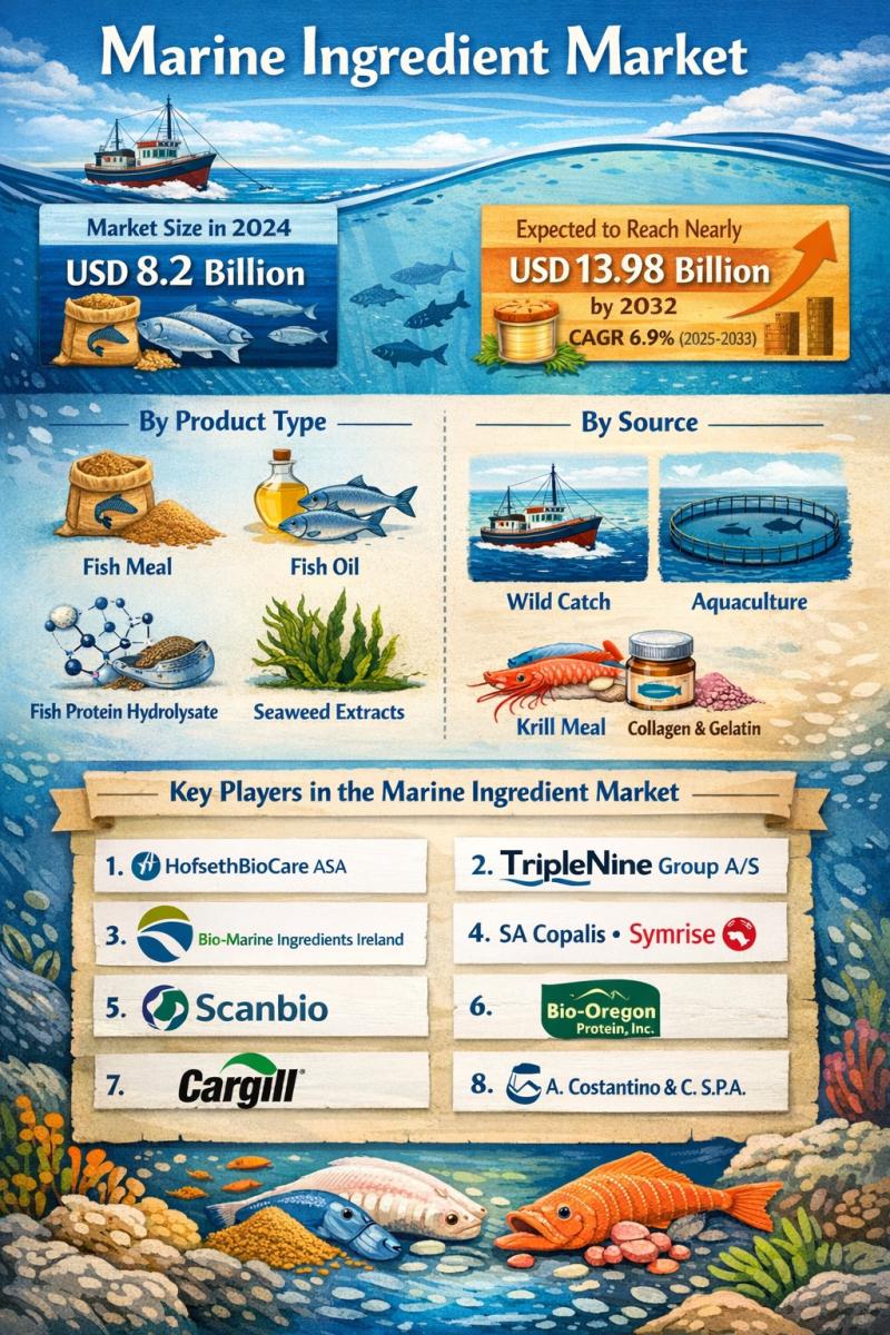 Marine Ingredient Market Size to Reach USD 13.98 Billion by 2032, Growing at a C …