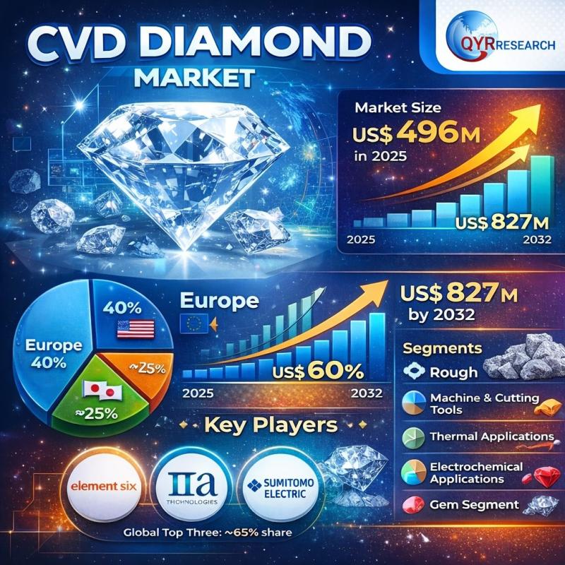 CVD Diamond Market Expected to Reach US$ 827 Million by 2032, Growing at a 7.7% …