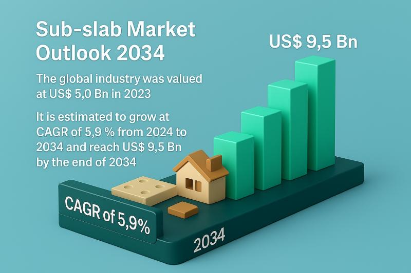 The global sub-slab market is entering a period of sustained expansion backed by strong infrastructure development, rising demand for durable foundation solutions, and rapid adoption of assembled and modular construction methods. According to the latest industry assessment, the global sub-slab market, valued at US$ 5.0 Bn in 2023, is projected to grow at a CAGR of 5.9% from 2024 to 2034, reaching approximately US$ 9.5 Bn by 2034.