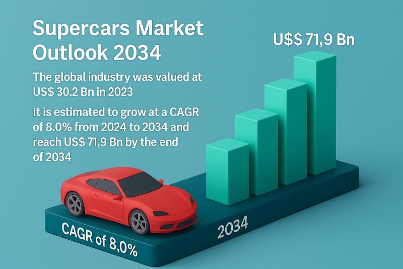 The global Supercars Market is entering an era of accelerated transformation, shaped by powerful engines, futuristic design philosophies, and an industry-wide shift toward cleaner, sustainable performance technologies. According to the latest market assessment, the global supercars industry, valued at US$ 30.2 Bn in 2023, is projected to grow at a CAGR of 8.0% from 2024 to 2034, reaching an estimated US$ 71.9 Bn by 2034. Strong demand for ultra-high-performance cars,โฆ