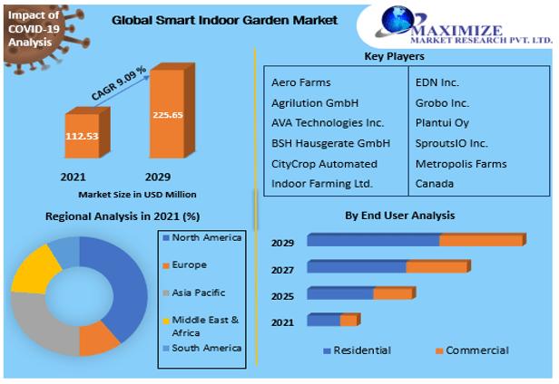The global Smart Indoor Garden Market was valued at USD 112.53 Mn in 2021 and is expected to reach USD 225.65 Mn by 2029, growing at a CAGR of 9.09 percent during the forecast period (2022-2029), according to a new report published by MMR.Smart Indoor Garden Market Report Scope and Research Methodology