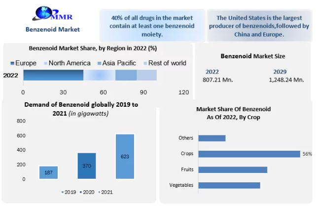 You can edit or delete your press release Benzenoid market reached a value of USD 807.21 million in 2022 and is projected to reach USD 1,248.24 million by 2029, growing at a CAGR of 10.2% during the forecast period. here