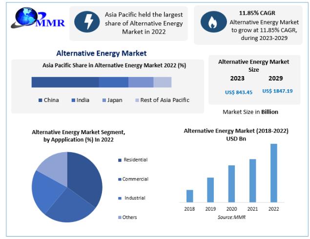 You can edit or delete your press release Alternative Energy Market is expected to reach USD 1,847.19 billion by 2029, growing from USD 843.45 billion in 2022 at a compound annual growth rate (CAGR) of 11.85% during the forecast period. here