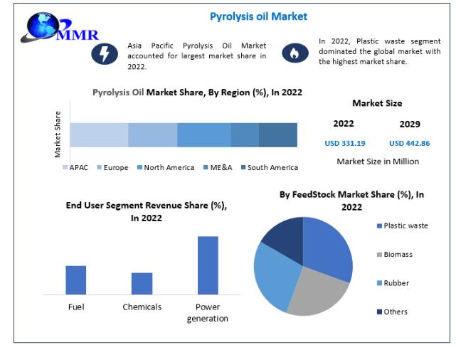 You can edit or delete your press release Pyrolysis Oil Market size was valued at USD 331.9 Million in 2022 and is projected to reach USD 442.86 Million by 2029, growing at a CAGR of 4.20% during the forecast period. here