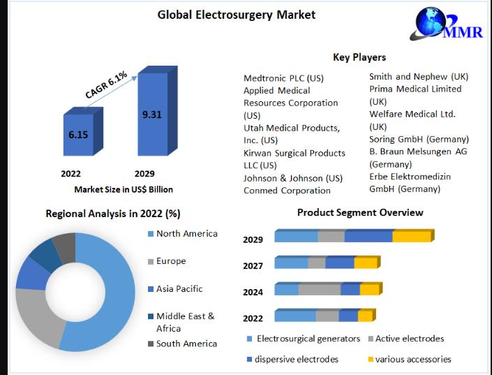 You can edit or delete your press release Electrosurgery Market size was valued at USD 6.15 Bn. in 2022 and is expected to grow at a CAGR of 6.1% from 2023 to 2029, reaching nearly USD 9.31 Bn. here