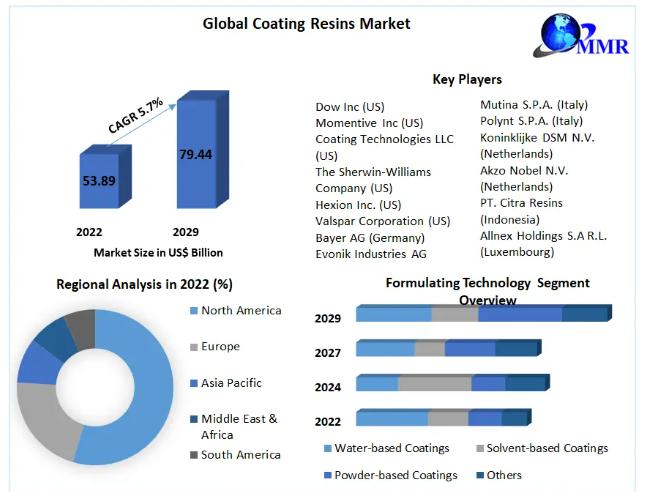 You can edit or delete your press release Coating Resins Market was valued at USD 53.89 Billion in 2022 and is projected to reach USD 79.44 Billion by 2029, exhibiting a CAGR of 5.7% during the forecast period from 2023 to 2029. here
