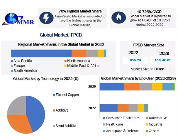 You can edit or delete your press release Flexible Printed Circuit Boards Market was valued at US$ 20 Billion in 2022 and is projected to grow at a remarkable CAGR of 10.725%, reaching an estimated revenue of US$ 40.81 Billion by 2029. here