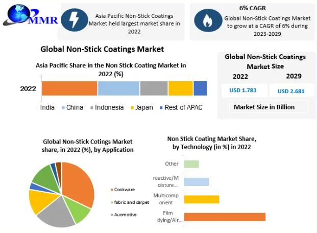 You can edit or delete your press release Non-Stick Coatings Market size, valued at USD 1.783 Bn in 2022, is expected to reach USD 2.681 Bn by 2029, growing at a CAGR of 6% during the forecast period. here
